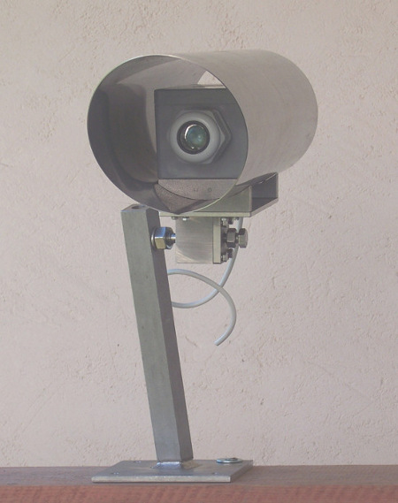Der Schutzhaubenträger wird von einem Kugelkopf getragen, der am Ende eines Stieles (hier hat dieser eine Länge von 30cm) eingeschraubt ist, welcher in einer Platte 150x150mm endet, die vier Befestigungslöcher (für Schrauben 8mmØ) zur Montage auf einer Fläche besitzt.